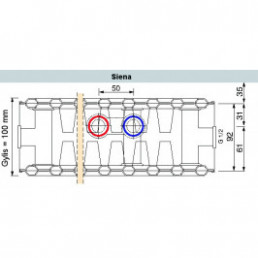 ∙ prijungimai (vidiniai sriegiai): 2 x G 1/2” šone, 2 x G 1/2” apačioje centre.