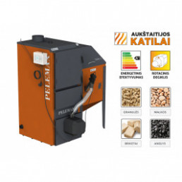 Granulinis katilas PELLET UNI 26 kW kompl. su rotac. 26 kW degikliu sraigtu 230 l met. bunk.
